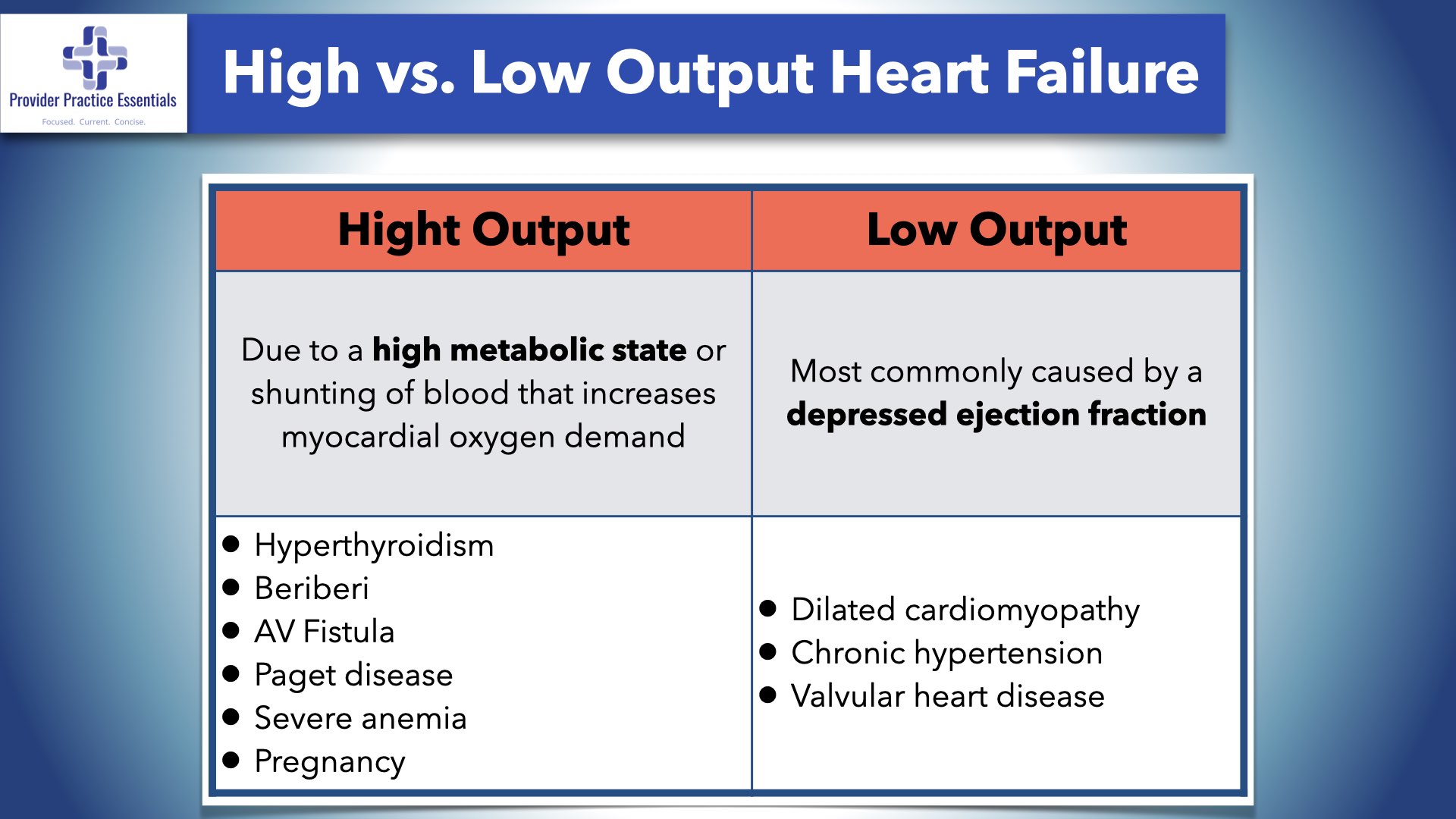 Right heart failure: Majority of cases are a result of left heart failure, although isolated pulmonary diseases can also cause this syndrome.