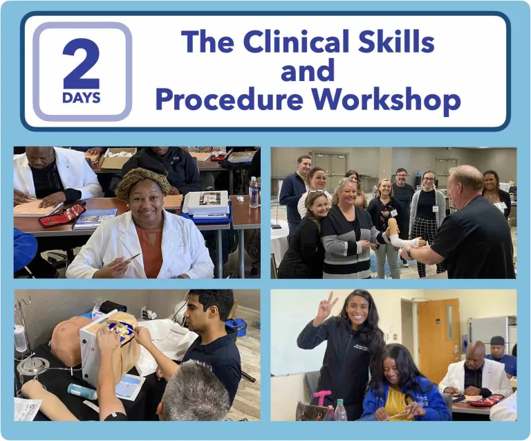 Combines the 2-Day Clinical Skills and Procedure Workshop, Ultrasound Course, Airway Course, and Suturing Course in 1 program